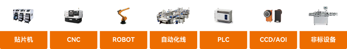 各行業主流生產加工設備(如機加、焊接、貼片、涂覆、壓合等)、自動化設備(Robot、自動化產線、自動化倉庫等)、各類測試/檢測設備(CCD、AOI、ICT、FCT等)以及基于工業通訊的各種設備。